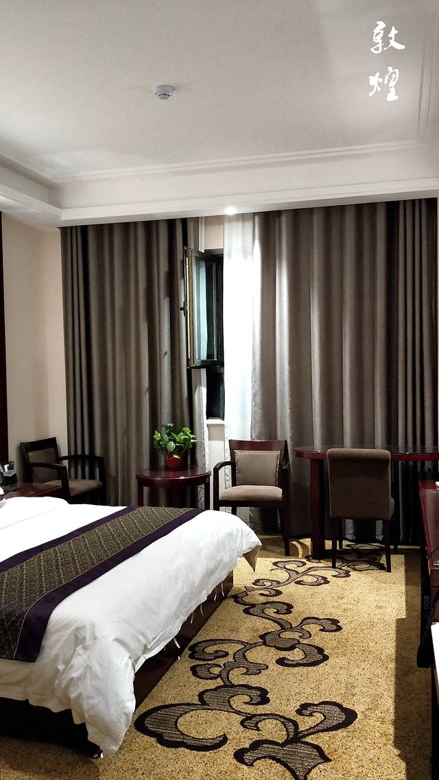 刚到敦煌,我们就从火车站坐了公交车去酒店,由于事先不知道酒店可以免费接客人,也没有预约时间,所以白白浪费了一次机会。不过到了以后我们告诉她,先放一天行李,我们明天才入住,虽然前台很为难的样子,但是查到了我们的订单后还是爽快的让我们放置了行李,毕竟背着一个大包出门是真的好累的。还提醒我们将贵重物品全部带在身上。作为两天没有睡过床的我们来说,看见床就是一种惊喜,房间有两个椅子,还有简单的桌子,由于敦煌比较干燥,所以房间还有加湿器,对于我们来说也是一个福音。房间的气质比较有古朴气息,也符合整个酒店的风格。床对于我们来说太硬了,由于几天没有睡床,于是晚上的睡眠也是比较好的。把充电宝充到最满,给第二天的出行做足准备。