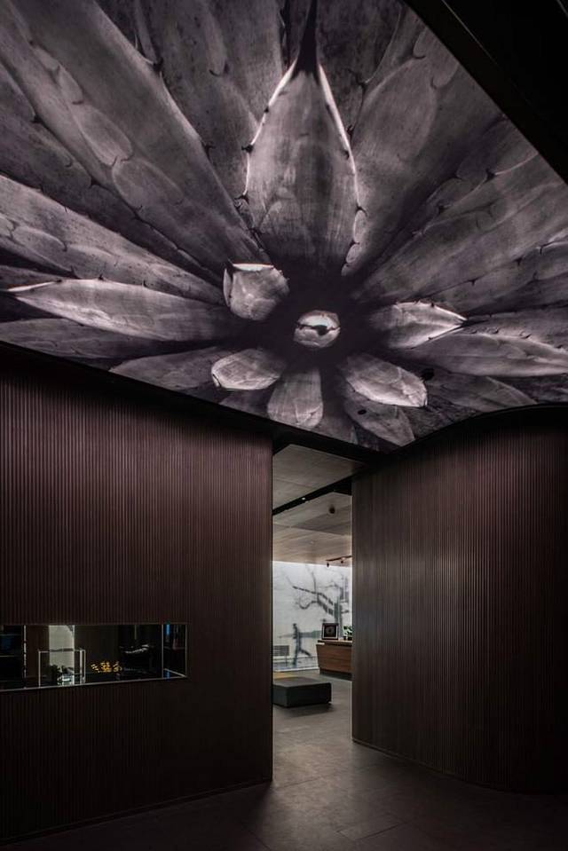 良渚文化中心建筑部分十分简单,大屋顶下盖着3条方盒子,每个盒子承载不同的功能;安藤忠雄用十分简单的语言创造丰富的空间,并且引入自然界的抽象元素,使空间体验变得独特和有感染力;在这个项目中,屋顶的采光窗、延伸至屋面下的水面和水岸边的樱花道打破了清水混凝土封闭的印象,光、水、樱花这三个元素也是安腾惯用的自然元素,这些元素非常融洽的融入到了建筑内部。