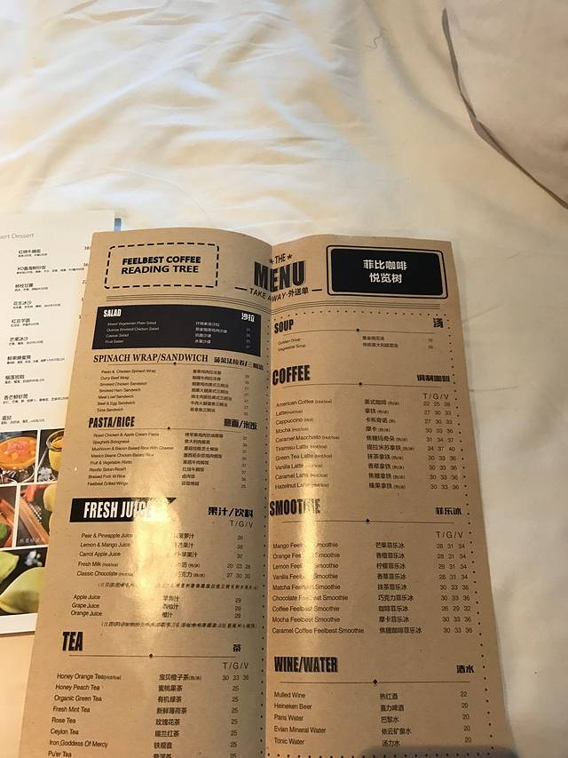 而且心隅酒店B1层还有据闻在杭州很出名的24小时不打烊的书店哦。下图是这家书店的餐牌。