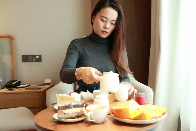 今天早早起床就在酒店享受了一个美美的早餐,但是我们并不是选择了酒店里面的早餐哦,而是买了2快蛋糕,好好品茶酒店的龙井跟咖啡。