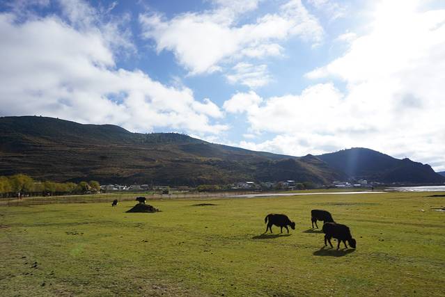 甘海子是玉龙雪山东面的一个开阔草甸,海拔约3100米,在高耸入云的玉龙雪山东坡面前,来到这会给人一种开阔空旷的感觉,但因为我们是11月份去的,而且早上没有什么阳光,所以就下车看了一下就往下一站去了。