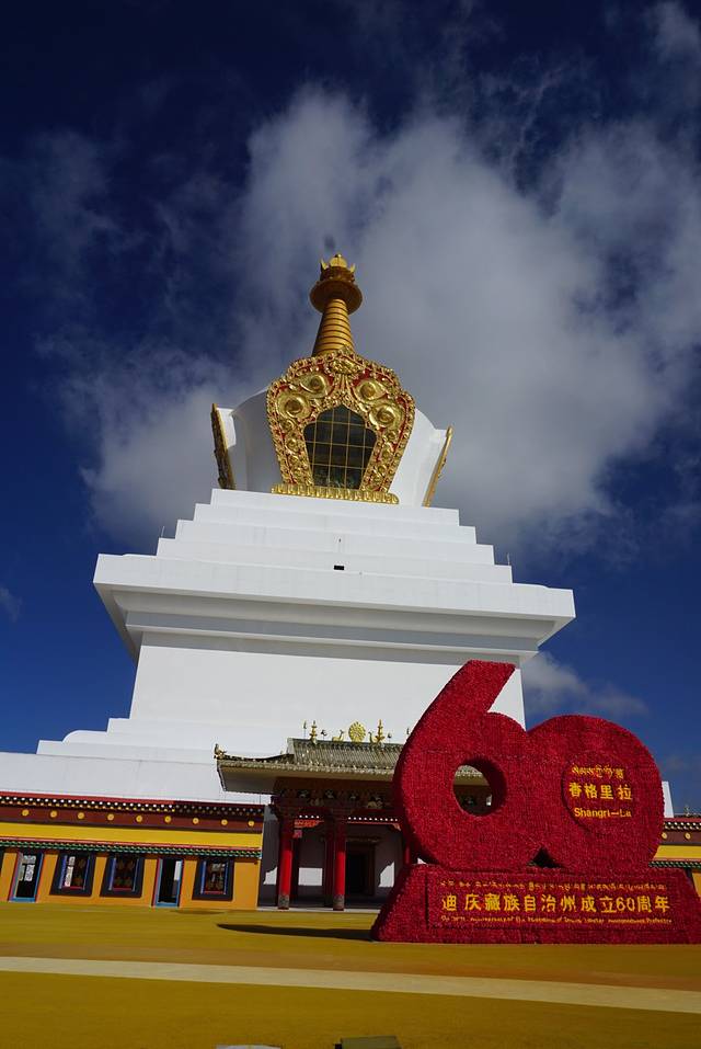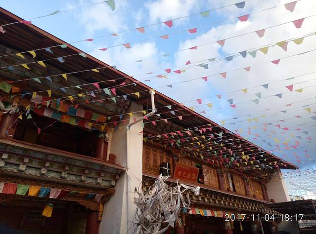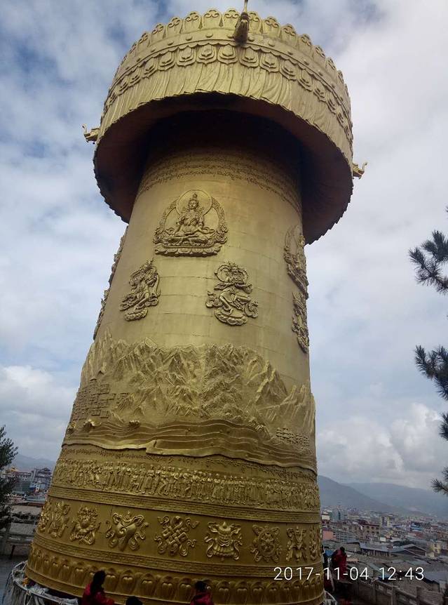 全世界最大的转经筒,要十个人才能转动,我们七个人试了一下,还是可以转动的。站在这里里,可以俯视整个香格里拉哦。