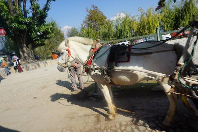纳帕海,是一个湿地,和伊拉草原连在一起,可以徒步,也可以骑马,骑马是要额外收费的,150/人。骑马除了在草原,还会经过藏民村庄。两个马会有一个藏民牵着,都是他们自己养的,马儿很乖,坐在上面很稳。沿途风景真的不错,天很蓝。如果对骑马没兴趣,其实不需要额外付费,在草原徒步观赏也很好了。回程还在最大的白塔前拍照了,因为还在修建,所以不能参观,看到藏民在这里举行婚礼。