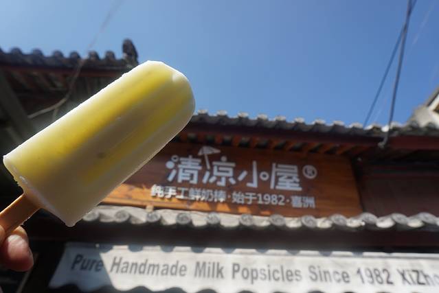黄帅哥给我们介绍了喜洲古镇三大小吃,清凉小屋的牛奶棒,喜洲粑粑和小白家手工酸奶。牛奶棒真的很赞,冬天吃冰棒最快乐了,听说不一定每天都开门的哦,要看运气的。喜洲粑粑有咸有甜,味道真的不错,而且很饱肚。手工酸奶有很多味道,还是觉得原味最好吃。