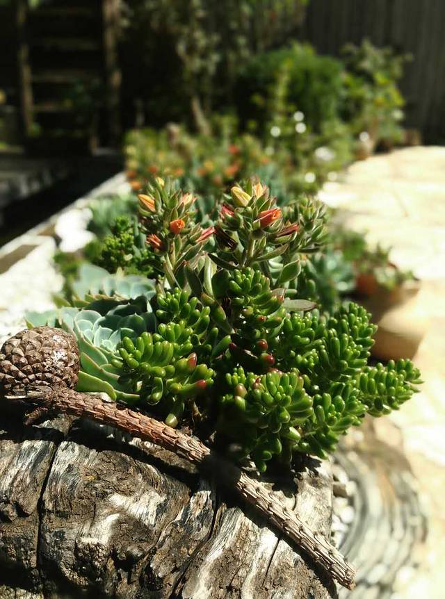 院子开阔,客房在环绕两边,每个房间都可以观赏院落景色,多肉长得很精神。