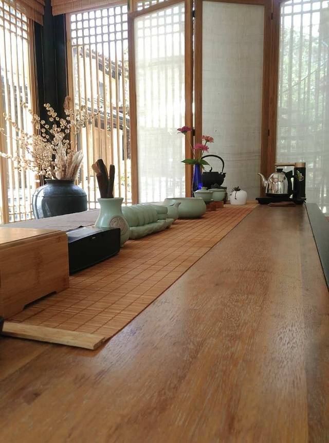白族老宅子改造而来,以旧复旧,格子窗很有唐风汉韵。最爱水中央的禅茶室,一溜儿的原木色,素雅宁静,简约不简陋。