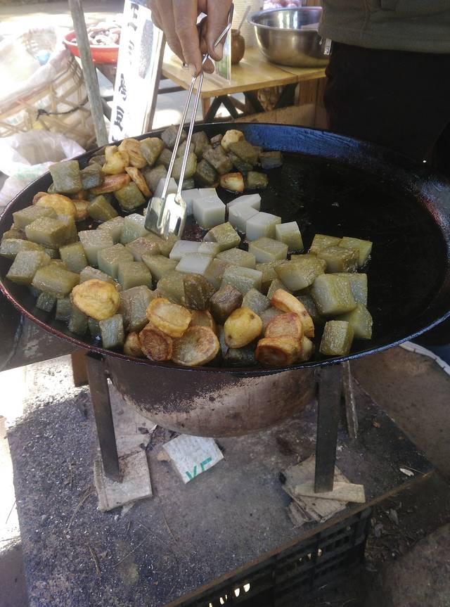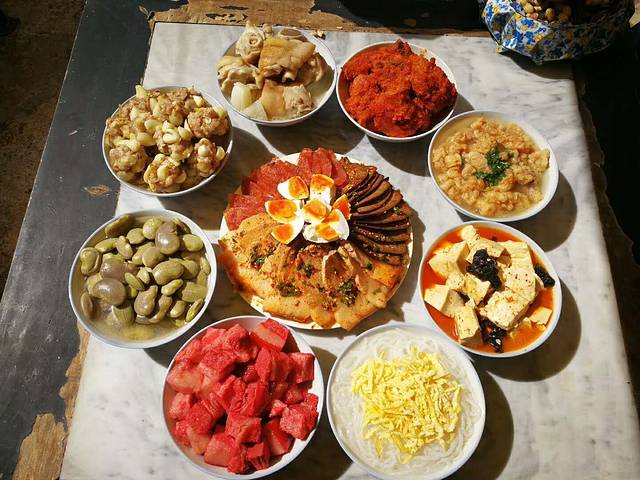 如果想品尝当地小吃,出客运站的那条街上的小吃摊是不错的选择,鸡豆凉粉,炸土豆,烤乳扇都不错,早上还会有锅子里煮着热气腾腾的新鲜牛奶,再来一碗香喷喷的饵丝,恩,很享受,很小镇生活气息。