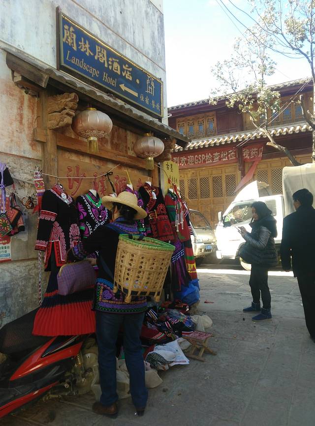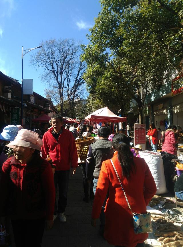 街上走着的大多是当地村民,不要想象着满大街的白族服饰,那是节庆日才有的装扮。平常的衣着和汉人一样。也有一些住在山里的彝族人穿着色泽鲜艳的彝族服饰,一些上年纪的白族婆婆也喜欢穿传统服装,年轻人嘛,服装就和外面的汉族人一样了。