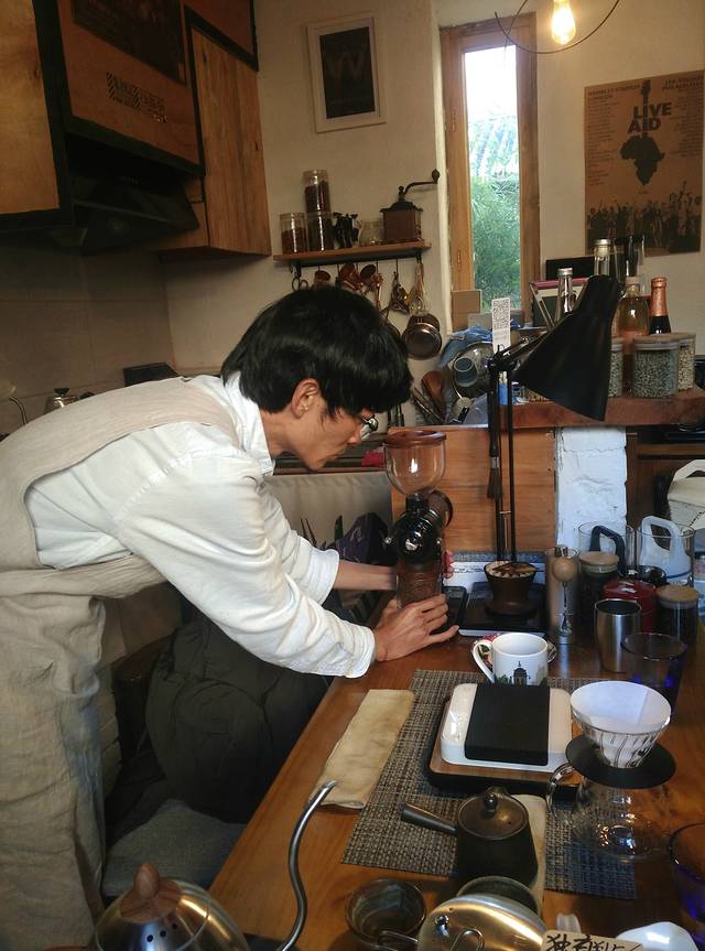 老板是个很有性格的年轻人,他们家只有现磨手冲咖啡,还有复古的黑胶唱片,还有80年代的卡片机。在火柴咖啡看老板冲泡,或者折腾老板自己收藏的一些很有年代感的小玩意,都是很有意思的事情。据说,店里众多马灯其中一盏,使他们家祖传的油灯,一般不让人碰。