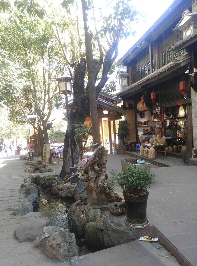到沙溪客运站停车场,第一感觉是,这真的是乡下啊。白墙青瓦的房屋,典型的白族建筑。走100米左右,看到了一块巨大的石头,“寺登街”三个大字映入眼帘。寺登街是一条浓荫掩映的石板路,街道两旁有潺潺溪流,清澈灵动。