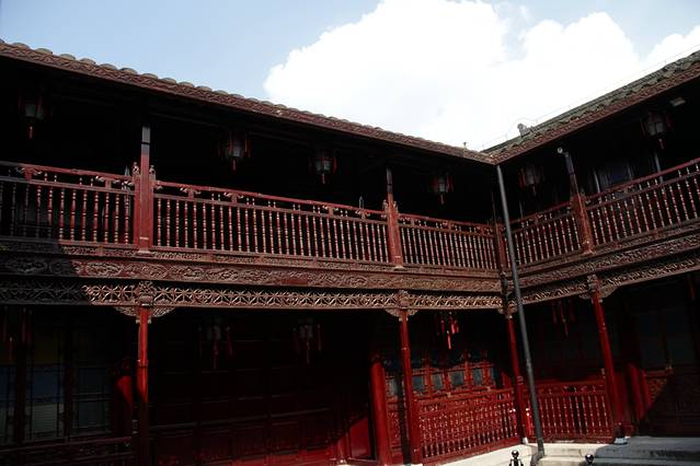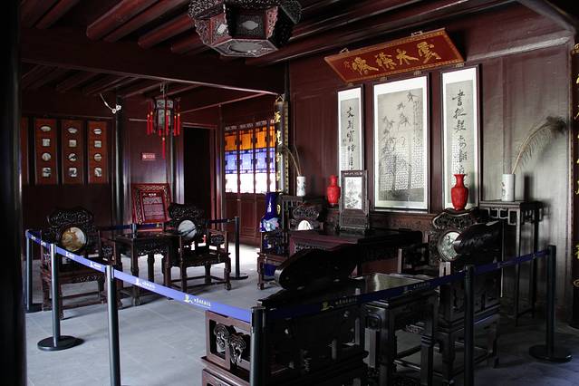 下了观澜阁便是南园,经过南园,来到的就是精华之所在——雕花楼,据说至今已经有两三百年的历史了,能保存的这么好也是不简单呐,二楼赫然写着江左第一楼,朋友说这是因为长江本是东西走向,走到高港的时候转了个弯变成南北走向了,高港又在长江以东(顺着长江就是左边),所以就叫江左第一楼。走进楼内,来到的天井算是最最精华的部分了,各种各样的雕花蕴含着丰富的故事,五福临门前,福如东海等等都体现了当时工匠们的心血。