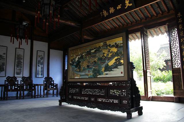 穿过家祖屋来到了北园,最先引入眼帘的便是那最能说明雕花楼上一代主人发家致富的船舫——沐雨舫,据说雕花楼的主人当时是当地首富,是靠船运输木材发家的,所以才建造这么一个沐雨舫以作纪念,也是一个纳凉赏月的好去处。