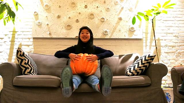 怀里抱的是个真南瓜,超级沉。