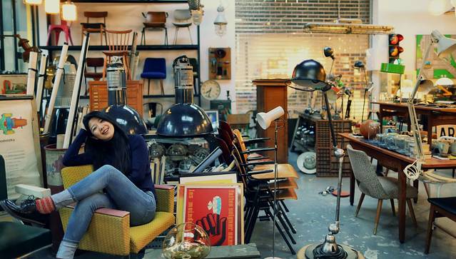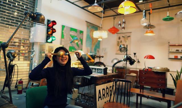 一进咖啡馆,根本就顾不上点咖啡,直愣愣的就冲进旁边的宝堆里了。宝藏区里面都是复古家具,和特别特别特别特别特别特别多新奇的物件,牙医的椅子,防毒面具,造型各异的吊灯、台灯、大灯、小灯、红黄绿信号灯,金发模特、肌肉模特、男模特、女模特,泛黄的地图、复古画报、交通标志图,复古的耳环、戒指、项链,各种材质造型的餐具、茶具、酒具,我的天呐,眼睛简直跟不上!