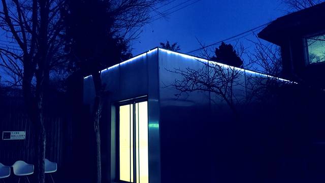 颖画廊是由一个老厂房和传达室改造再生而成,因此获得了德国Iconic architecture 2017奖项,画廊主人颖姐还专门为我们开了展馆上方的灯,然后带我们出来参观,说晚上画廊从外面看像一个双开门的大冰箱,哈~