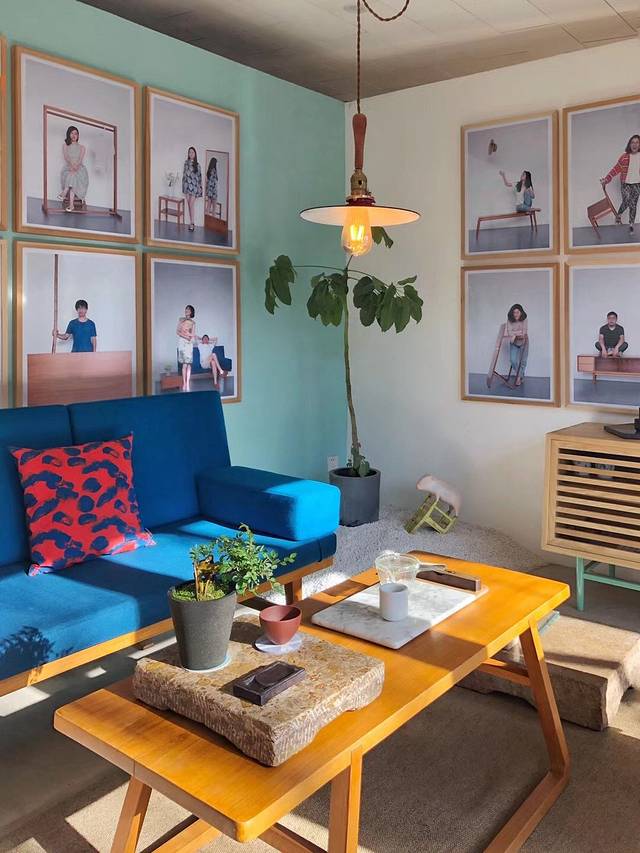 吃完饭就去抓老板了,跟老板说了我这次来草场地游玩的想法,方先生很热情的带我们去了他的家具展示区,就是餐厅门口旁的一个阳光最好的区域,这里都是他设计的家具,设计的理念就是“用起来方便舒适,形态上简洁美观”,方先生本身也是一位摄影师,墙上挂着的照片都是他的朋友到工作室里玩耍的时候,他亲自掌镜拍摄的,每一张都有一点小趣味。