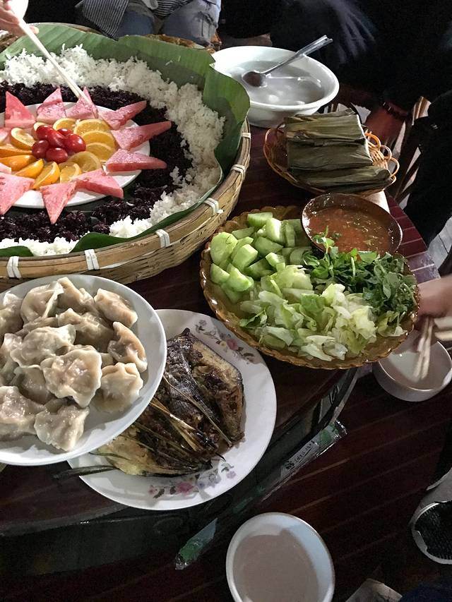这是篝火晚会前给我们准备的丰盛晚餐,那个菠萝饭好吃还有年糕也不错