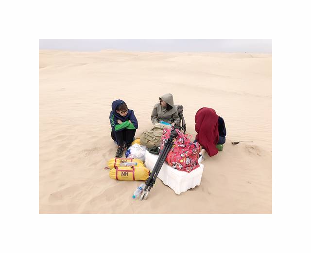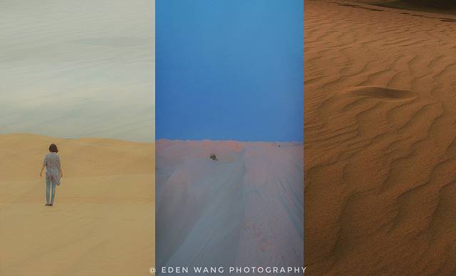 **去沙漠尽量不要换镜头啊,风沙太大。一定套好相机镜头和三脚架,用各种方式!