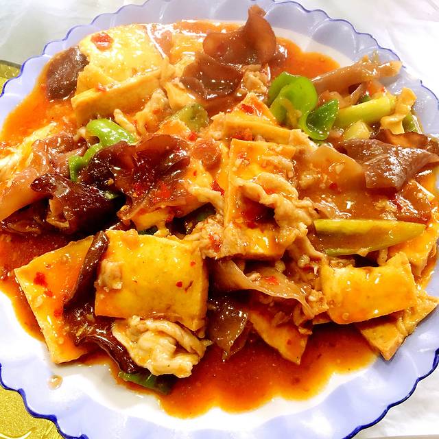 家常豆腐,25一份,分量足,豆腐口感不错,里面加了肉片和木耳,很下饭。