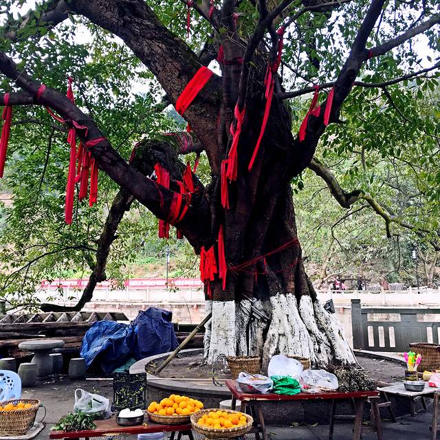 貌似是古镇内最大的一棵树,周围摆满了当地人的小摊,桔子是刚采摘下来的,1元一斤,味道酸酸甜甜。