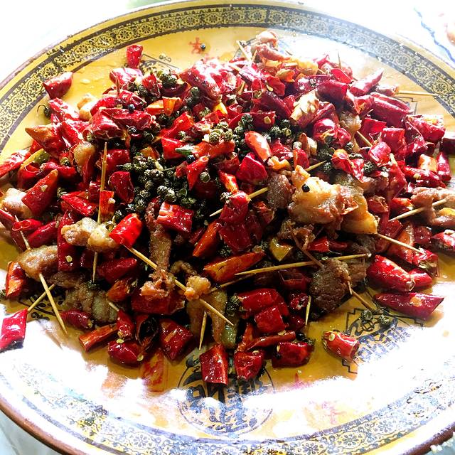 全名记不住了,大概记得叫竹签肉,也就是用牙签穿着猪肉炸的,再用辣椒爆炒,味道还可以,58一份。