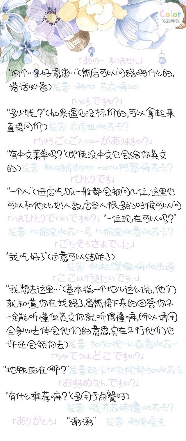 给身边不会日语的朋友总结了些“傻瓜日语”,是我能想出的最简单获取帮助的表达方式,会日语的可以忽略这段,自己看着都觉得傻里傻气的哈哈哈绝对不是最精准的表达,但却实用~