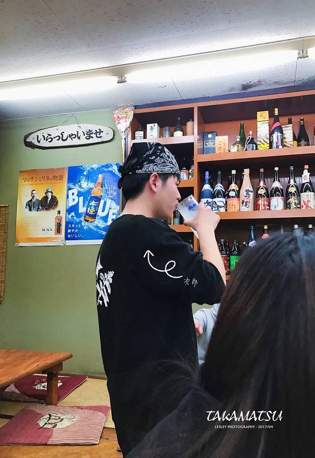 我决定把老板爷爷送的这杯粉红色烧酒喝了,但是大璐璐说送的那杯她实在喝不下了,于是我准备调戏下最老实的次郎(也是大璐璐起的哈哈哈),我叫他过来说我们一杯就够了,这杯你帮忙解决吧哈哈哈~