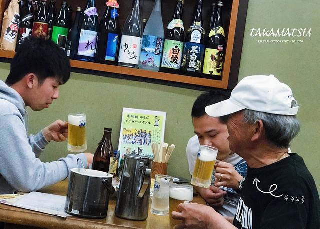 爷爷2号,就是老板啦~自己打了杯生啤出来和旁边榻榻米上的俩小哥儿一起喝酒聊天,还送了他俩两杯啤酒,看见我的杯子也空了就让点餐小哥儿给我俩也再来两杯一样的,说是他送我们的。