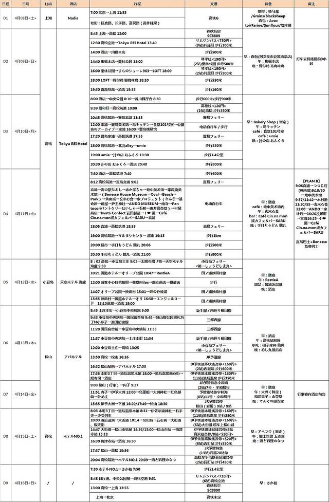 本葵是个比较随性的人,但是一碰上日本这个国家,我就会秒变强迫症每次行前都会做个精确到分钟的行程计划表哈哈哈~不过也别觉得一点儿用没有,在乡下这种车少船少还不好打车的地方,这个表还是非常受用的,有时候赶不上这班车下班您可就要等上一个多小时喽~