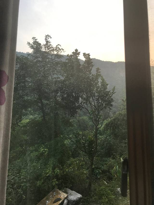 我拍的家庭旅舍窗外的风景,绿意盎然。