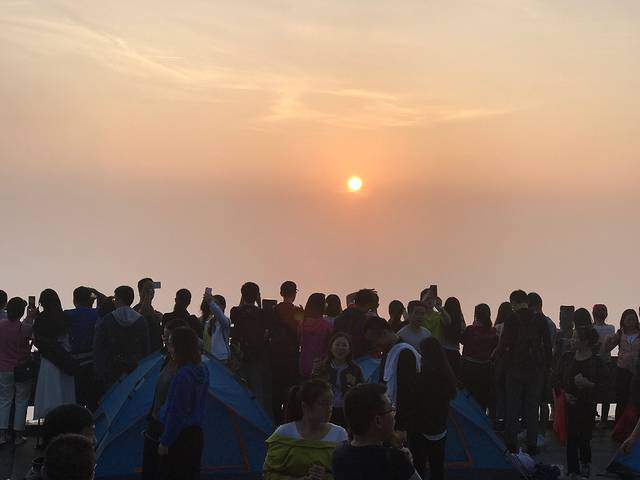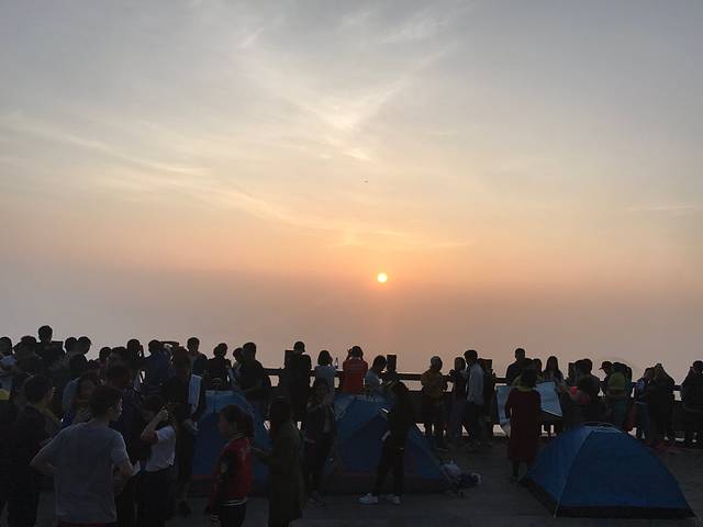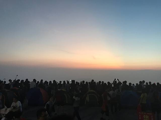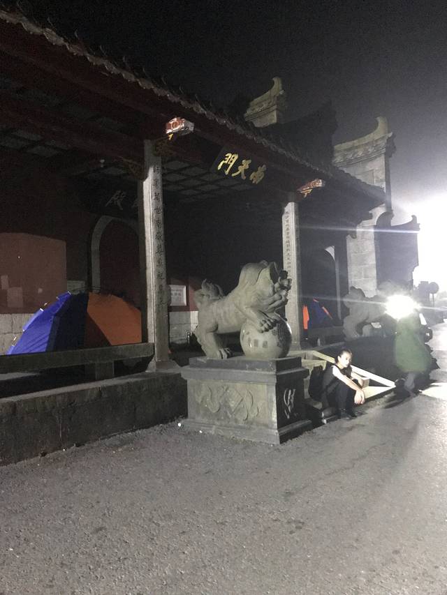 我是凌晨两点多开始爬山的,两个女生看着周围黑黑的一片,还是害怕的,想过回头,但最后还是决定向前走。走了一刻钟,还没看到大部队,内心深处的害怕感又来了。这个时候,刚刚好看到了一个载客的摩托车司机,我们坐了上去,摩托车答应送到半山腰索道那。在这里要提醒大家,摩托车是可以砍价的。到了半山腰那,可以看到大部队了,我们悬着的心也放了下来。