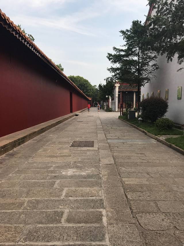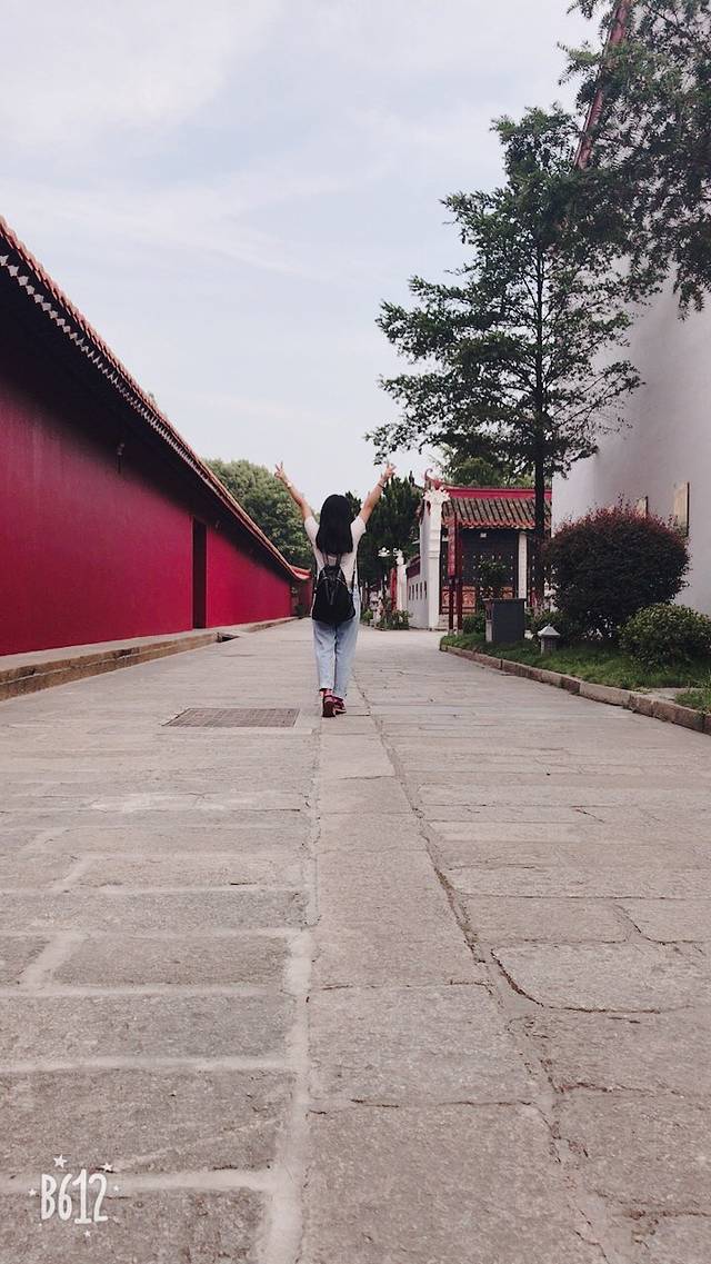 很喜欢这条路,红色的墙面,青石铺垫,有点像皇宫里那条有着年代感的路。我站着不动,望向路的尽头,迎面走来三三两两,忍不住拍下了它。