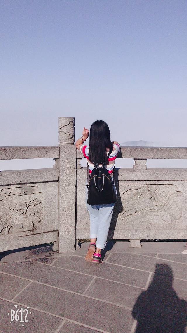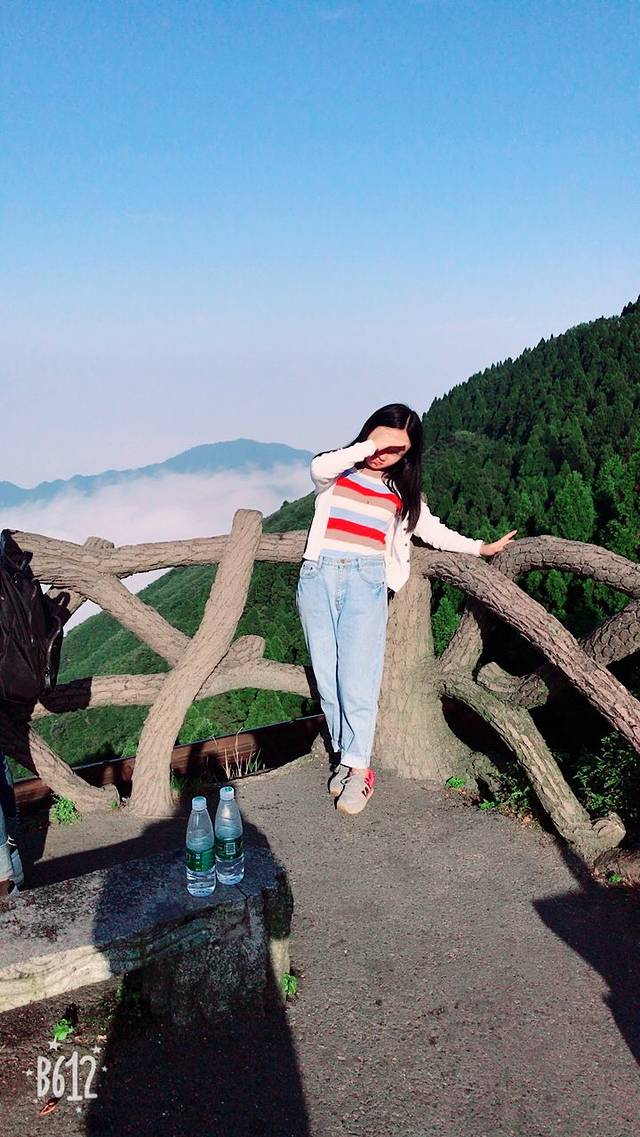 到达祝融峰的我,兴奋地拍了一张,比了一个最老套的✌️,嘻嘻