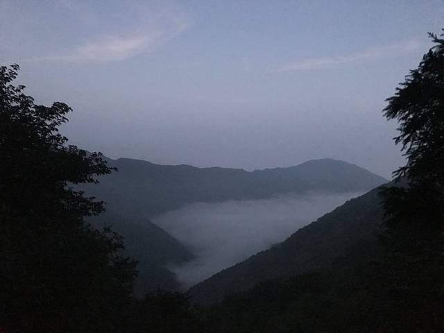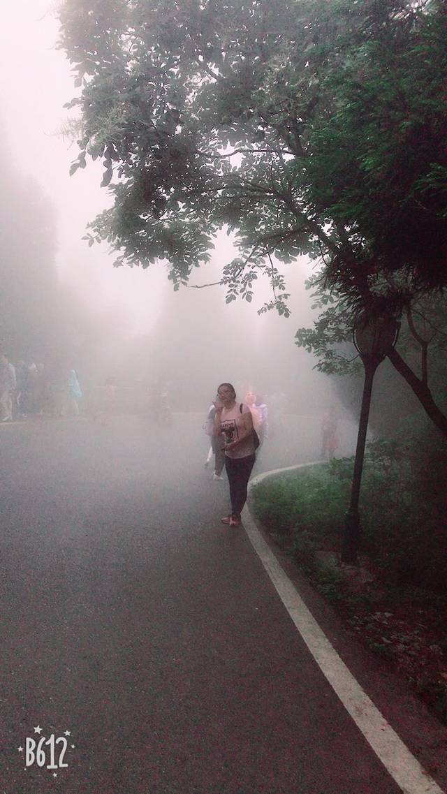 下山的雾很大,我给我朋友拍了一张,我说不定就是传说中的损友,哈哈哈。