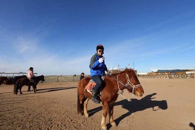 来到草原上骑马射箭当然是少不了的,虽然冬日的草原少了几分夏日的热情,但是大家依旧兴致勃勃地开始体验冬日草原项目,除了保留了原来草原的传统项目,同时还增设了小火车、卡丁车等精彩项目。这下开始了一场我和冷冷的PK大战。