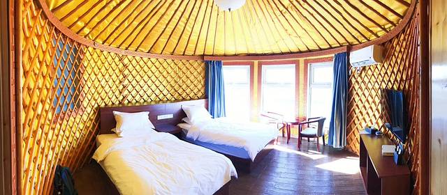 早些时候就听说我们的行程中会有大草原会住蒙古包会有篝火晚会,我和冷冷都对今天的行程格外的期待。蒙古包也是豪华的颠覆了所有人的预想,本来大家都准备艰苦的熬过这一页,到了之后才发现这个蒙古包和从前不太一样。它是披着蒙古包外皮的酒店,空调、厕所一应俱全,再也不用像在沙漠一样就地解决了。