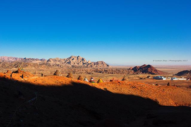 然而这个景点所吸引我的并不是这拜了能怀孕的石柱,毕竟我还是相信我的能力的。更令我感到高兴的是那里一个个此起彼伏的敖包还有五彩的经幡。因为景区很小,所以逛完景区之后就留有了很长的一段时间给我们拍照。我和冷冷当然也不能放过这么好的机会,不停地按着快门,记录下最美的瞬间。