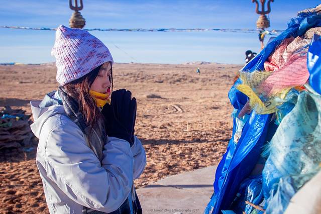 顺时针绕三圈,用最虔诚的心在敖包下许下自己的愿望,双手合十,偷偷看了一眼旁边的冷冷,我或许对于敖包没有那么多的信仰,我只想我跟冷冷一切都好,就这样一直走下去。
