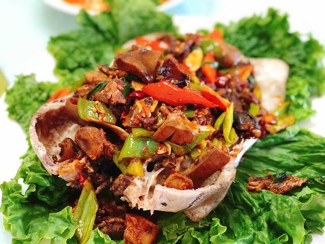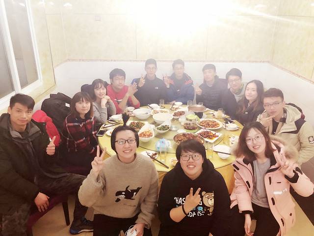 早上五点钟就起床武装自己,速干衣、轻薄羽绒服、冲锋衣、多功能面巾、帽子、手套,把自己裹得严严实实。六点钟出发,在车上用了早餐,做着一些小游戏,让我们彼此的关系更加拉近。驱车将近四个小时,来到了起点附近的一个餐馆吃了一顿沙漠简餐。说是简餐,一份羊头肉让我们地地道道地感受到了内蒙人的原汁原味。