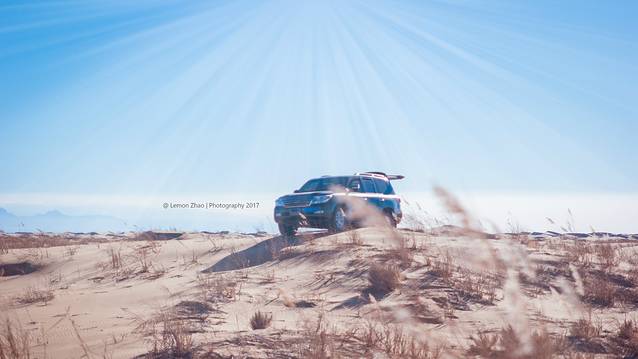 从吉兰泰盐湖入口出发进入乌兰布和沙漠,就真正的进入了我们这次要穿越的沙漠。由于并没有经过开发,所以一切都很空旷,教练说:“保证今天能看到徒步的只有我们一支队伍。”当然,为了保证我们的安全,户外领队还专门派了两辆越野车作为安全保障车紧紧跟随着我们,这之后也就成为了我们的拍摄道具。