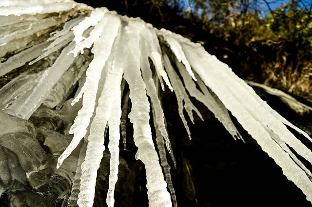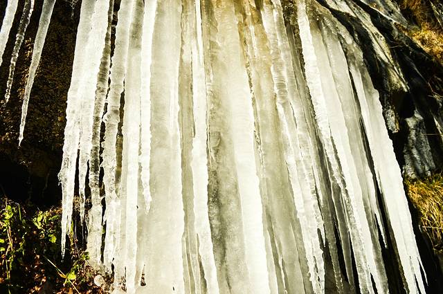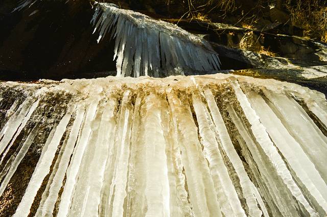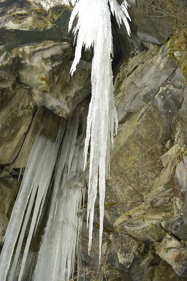 走了大概2公里,就能看到悬崖边上的冰瀑,忍不住要去拍照,忍不住要去 掰一根来玩。