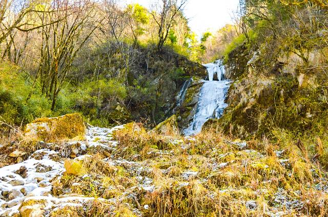 刚进沟谷,一阵寒风袭来,大概是因为河谷有水的原因,谷口风很大,很刺骨。继续前行,一路是毛坯状的马路,没有硬化,有些地方还塌方了。人能顺利通过,而且很好走。车就不能前行了。除非你是牧马人,或者铃木吉姆尼,方可继续前往。其他车还是乖乖停在谷口吧。