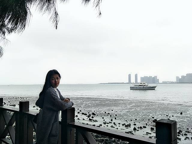 我们的最后一站是假日海滩。去到海滩的时候已经是晚上六点多了,天色准备要暗下来。我们本来的计划是看日落的,但是由于那天天气多云,没有太阳,所以我们也只能看看海景。不知道是去的时间太晚了还是旅游淡季的原因,假日海滩没什么人,可以说被我们包场了。