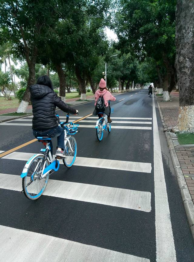 这是海南大学某一处的单车停放点,海南大学里面的共享单车也是超级多的。