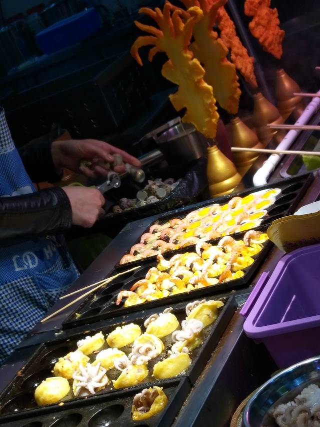 这个小吃街似乎没有骑楼小吃街出名,而且我也是无意中在某篇游记看到才知道的,据说是本地人最喜欢去的小吃街。进去之后果然是一条长长的街,我们到的时候是晚上八点半左右,里面超多人,一眼看过去只看到人头。街的两边是各种小吃摊,看得我们口水直流。和第二天的小吃街相比起来,我更喜欢这个小吃街的小吃。(不过这里的比较热气,以煎炸烧烤的为主)