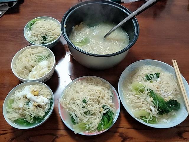 我们自己煮了饺子吃,每人还有一个完整的蒸鸡蛋,满足。