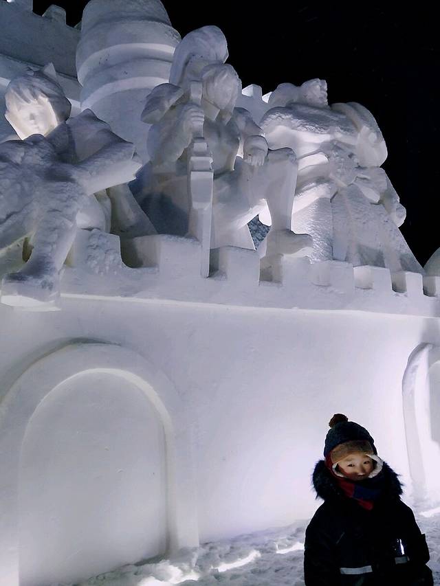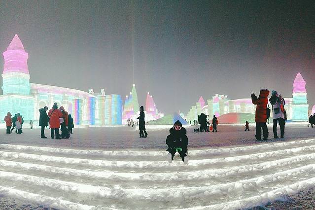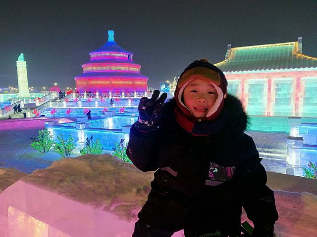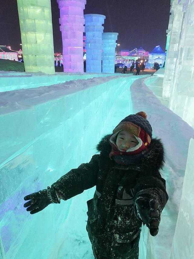 玩到6点左右打专车去冰雪大世界,贴了暖宝宝,那的温度低很冷,门口有很多小商贩卖滑板和夹雪球的东西,小滑板基本没用可以不买 大人是坐不下的,玩完后最麻烦的是约车,要提前半小时约才能约的到,司机会临时加价,我们去的时候20元,回的时候司机加价,50元,带着孩子我是有车就坐不计较,如果等车要很久而且室外太冷了