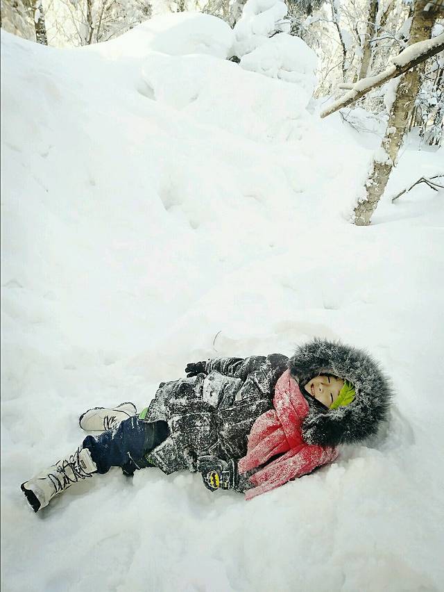 雪超级有厚度,倒下会砸个深坑 哈哈哈
