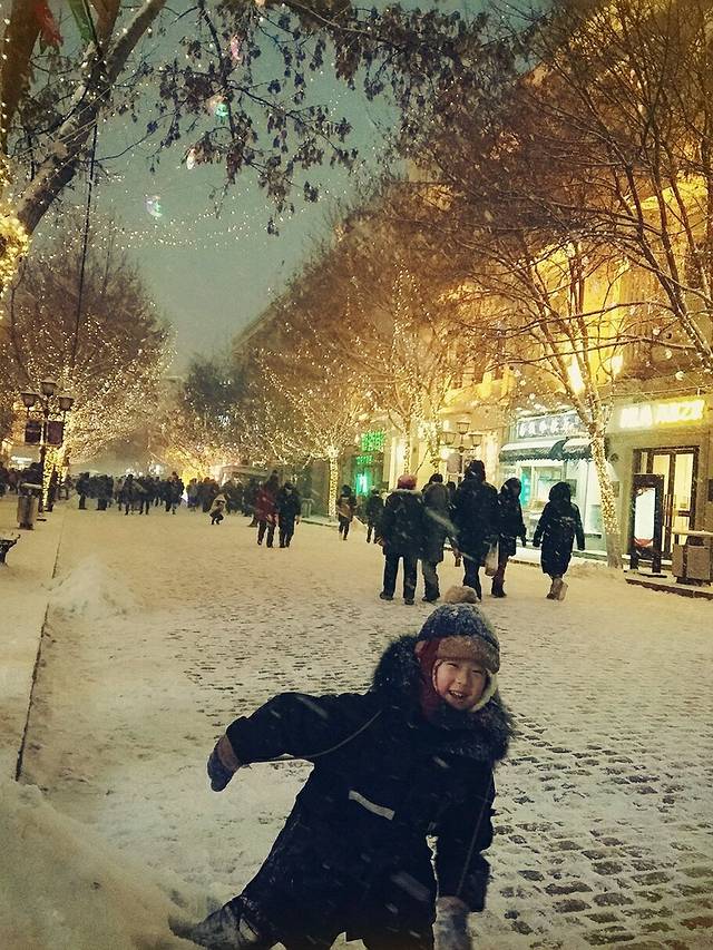 住教堂或者中央大街附近很方便,两个地方也很近,商场,美食都在附近,随时溜娃,不要在室外待1小时以上,会冻透的。