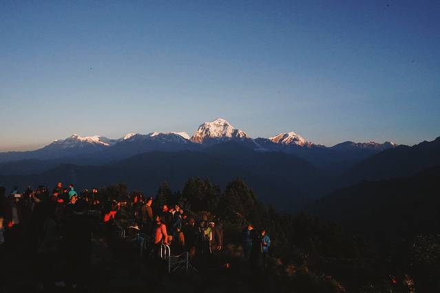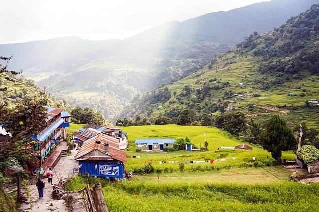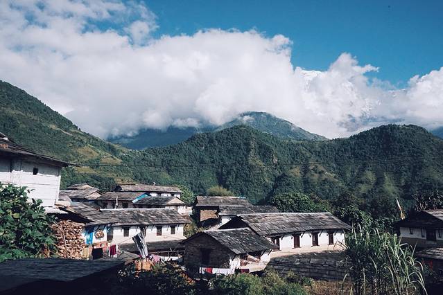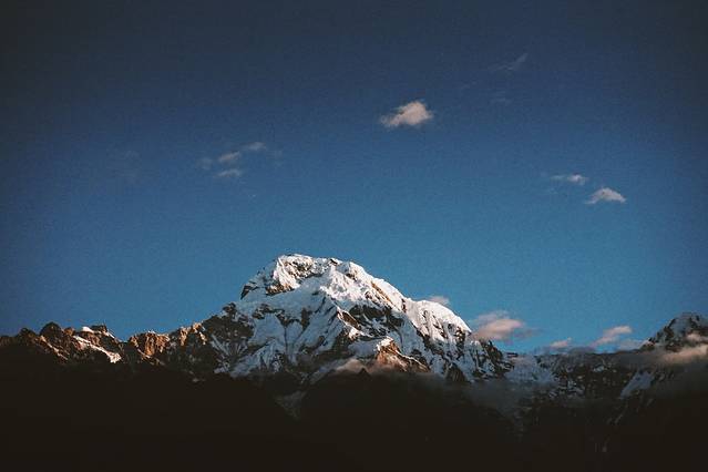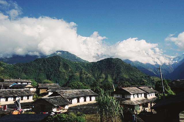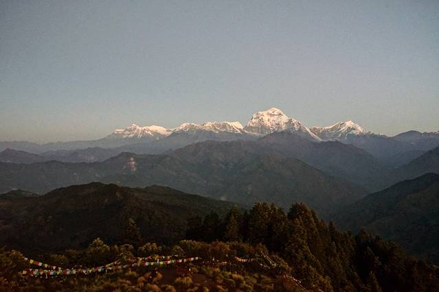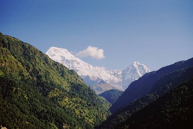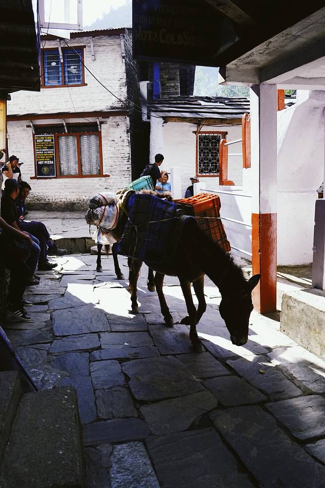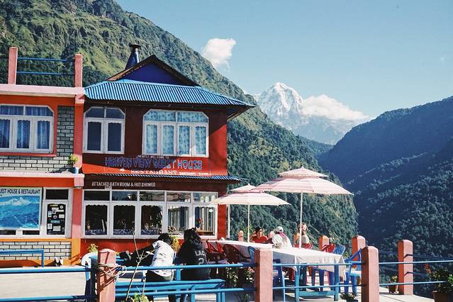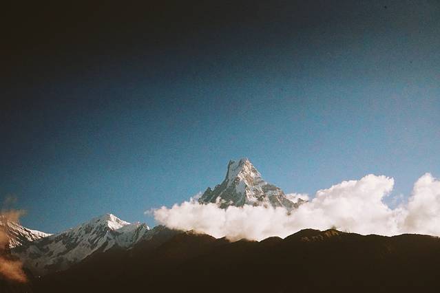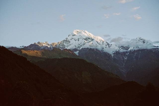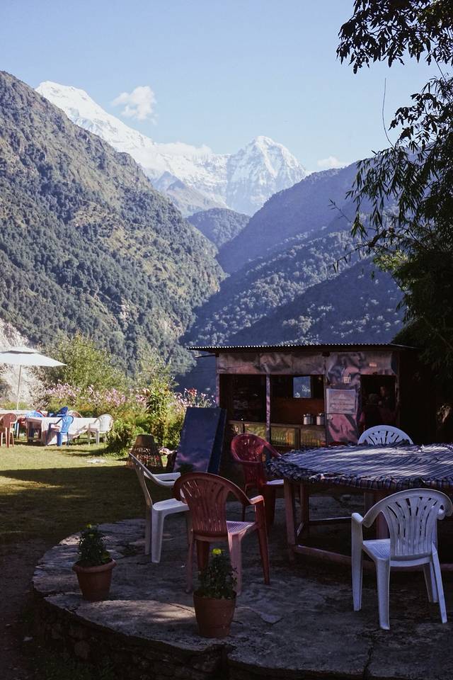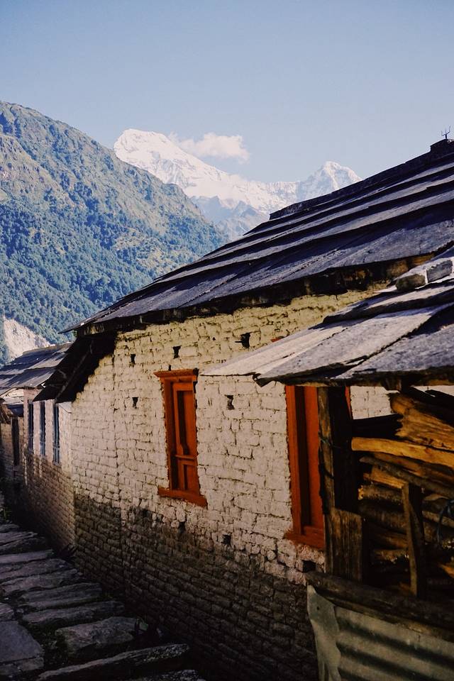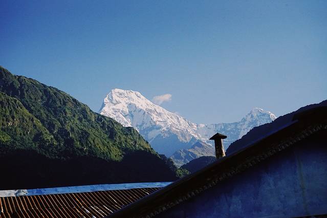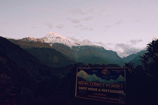 旅馆的条件不是特别好,没有向导叫,我也一早就醒了。本想去刷牙洗脸,一出门看到了鱼尾峰和可能是安娜普拉那南峰,立刻回屋拿了相机开始拍。